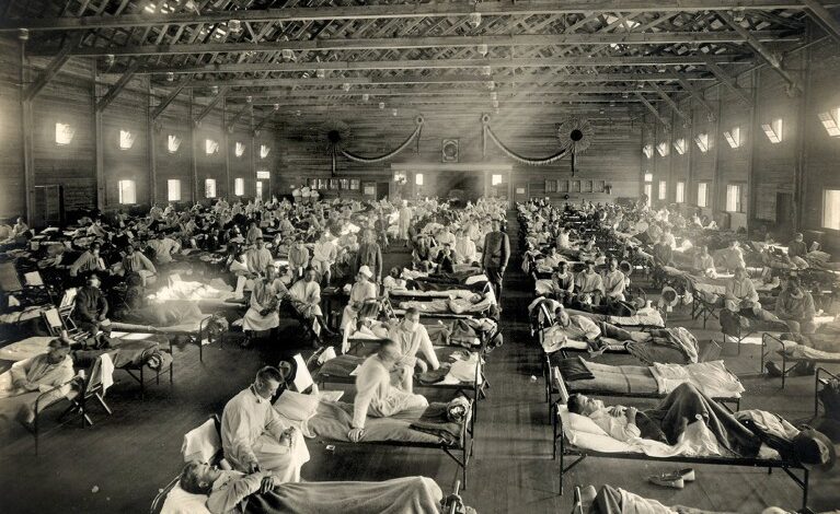 تم إنشاء أجنحة مستشفى الطوارئ خلال جائحة الأنفلونزا عام 1918.الائتمان: المتحف الوطني للصحة والطب / SPL