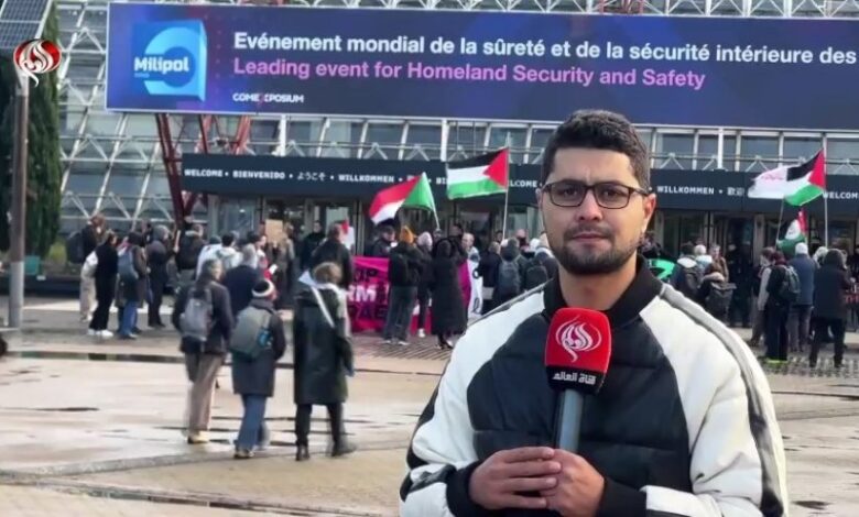 داخل أسوار ذلك المعرض عروض أسلحة ومشاركة صهيونية جاءت على مضض، أما خارجه فالشارع ينتفض ويرفض المشاركة ويعتبرها إعادة تسويق للكيان داخل أوروبا بعد ما لفظتها.