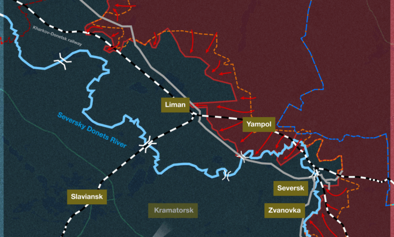 وفي غرب سيفيرسك، عبرت القوات الروسية نهر سيفرسكي دونيتس واستولت على منطقتين سكنيتين على الضفة الجنوبية –ويشير هذا الاختراق إلى أن القوات الأوكرانية في هذا القطاع تقترب من نقطة الإرهاق الحرجة.