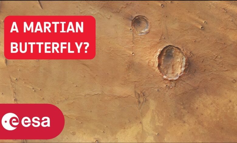“فراشة” عملاقة بحجم المدينة تم نحتها على سطحها المريخ منذ ملايين السنين حصلت للتو على صورة جديدة بفضل وكالة الفضاء الأوروبية (ESA) العلماء. يقول الخبراء إن الحشرة المريخية الجميلة، التي تحتوي على زوج من الأجنحة الصخرية الناعمة، هي تذكير مذهل بالماضي العنيف والمائي للكوكب الأحمر.