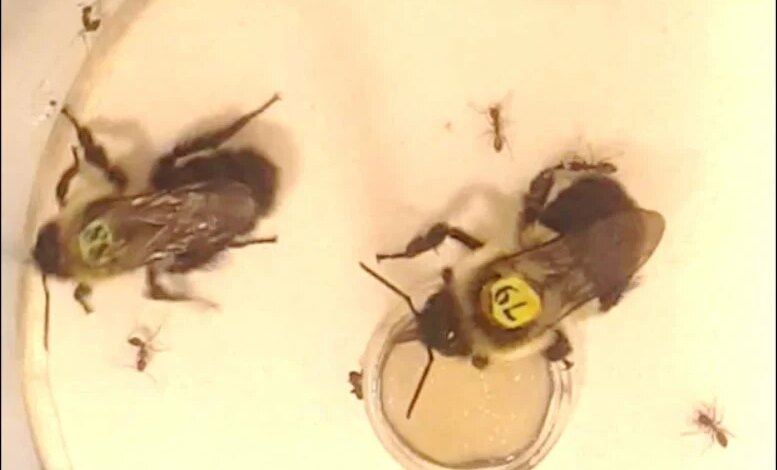 النمل الغازي يحول النحلة الطنانة التي تبحث عن الطعام إلى معارك مكلفة