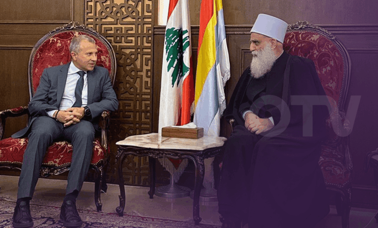باسيل لفت الى أن “الطائفة الدرزية هي طائفة مؤسسة للكيان اللبناني وهي قلب الجبل وركن أساسي تؤمّن مع بقية المكونات الطمأنينة والاستقرار لوطننا”، مضيفا: “لسنا بمنأى عما يحصل حولنا وتحديدًا في سوريا وما جرى هناك يدفعنا للقلق من إنتقال العدوى الينا ولا وجود لمبررات لحصول هكذا احداث ولهذا فإن تضامننا مع بعضنا البعض هو الذي يبعد الشر والخطر عنا”، معتبرًا أن “الاختلاف فيما بيننا مسموح فلبنان يتميز يتنوعه ولكن ما هو ممنوع هو المسّ بالآخر أو يشكل أي خطر وجودي وهكذا يسلم البلد”، مؤكدا أنه “مهما أتانا من ضربات من الخارج يمكن بتضامننا أن نردها ولكن المهم أن نحافظ على بعضنا البعض وهكذا نحفظ وطننا”.