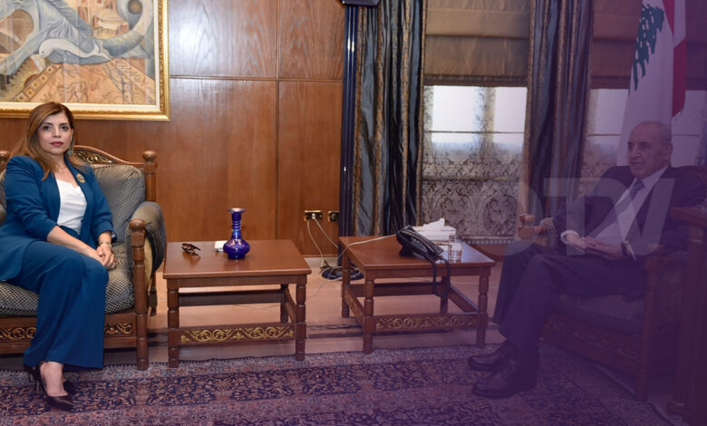 رئيس المجلس النيابي استقبل أيضاً في زيارة بروتوكولية السفيرة هند درويش بمناسبة توليها منصبها الجديد كسفيرة للبنان لدى منظمة اليونسكو.