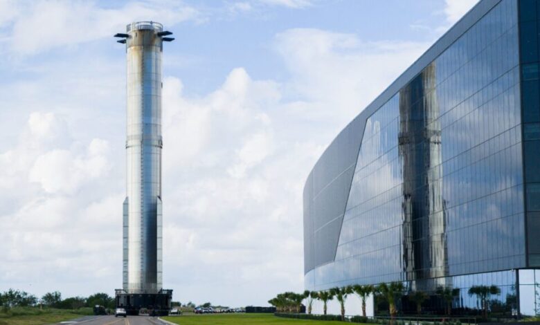 وصلت المرحلة الأولى من صاروخ Starship الضخم التابع لشركة SpaceX إلى منصة الإطلاق قبل الرحلة التجريبية الأسبوع المقبل.