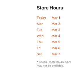 إليك كيفية ظهور ساعات المتجر المؤقتة على صفحات المتجر المتأثرة: