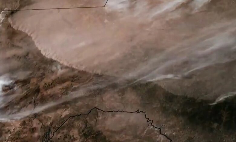 تُظهر صور الأقمار الصناعية المذهلة جدارًا من الغبار يتطاير عبر ولاية تكساس، بينما تشق جبهة باردة طريقها عبر الولايات المتحدة يوم الاثنين (16 مارس).