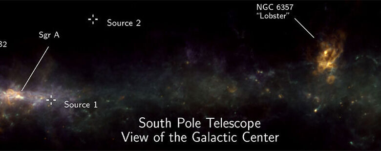 تم إنشاء خريطة مركز المجرة من ملاحظات تلسكوب القطب الجنوبي من خلال الجمع بين النطاقات 3.2 ملم (95 جيجا هرتز)، 2.0 ملم (150 جيجا هرتز) و1.4 ملم (220 جيجا هرتز). يتم تمييز الومضات بالصلبان