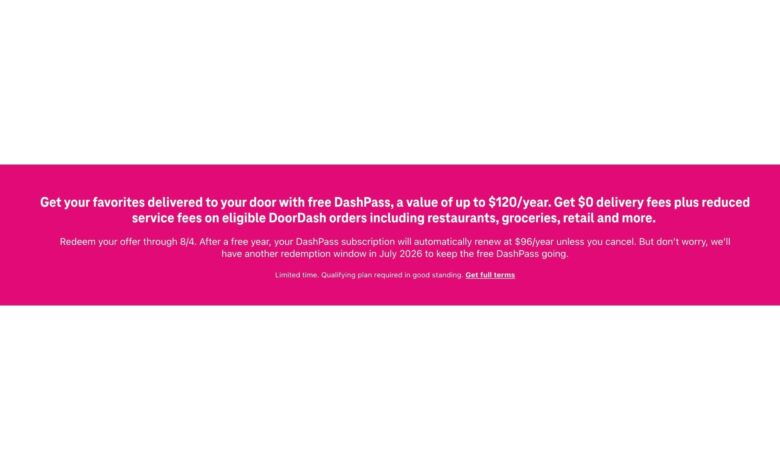 لدى عملاء T-Mobile حتى 4 أغسطس للمطالبة بمشاركات Dashpass مجانية.