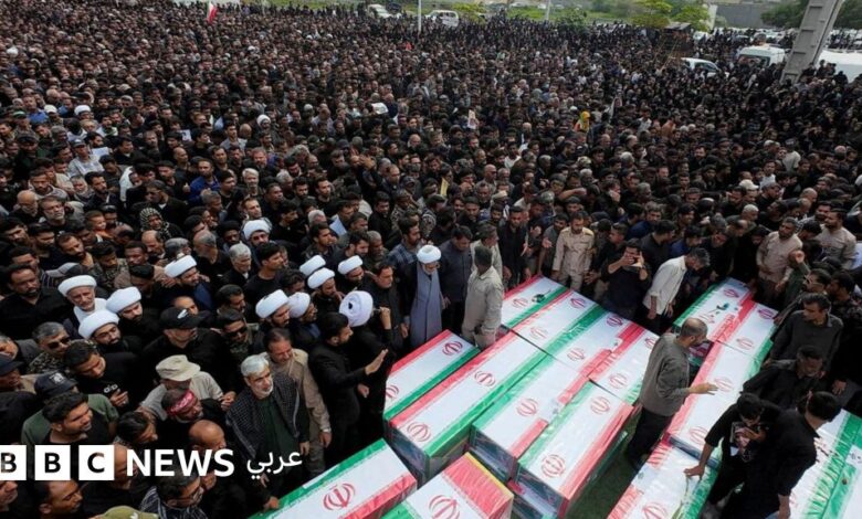التعليق على الصورة، حشد من الناس يشيعون جنازة ضحايا الهجوم في الثالث من مارس/آذار