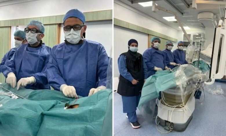 واشار الى انه “رغم استخدام العلاج الدوائي، لم تتحسن الحالتان، وكان الخيار الجراحي الثالث عالي الخطورة نظرًا لخضوع المريضين سابقًا لعمليتي قلب مفتوح. أمام هذا التحدي، اختار الفريق الطبي حلاً تداخليًا دقيقًا وغير جراحي عبر تحرير الصمام باستخدام القسطرة والبالونات الدقيقة، دون الحاجة لفتح الصدر.