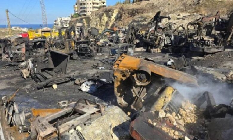 وفجر اليوم السبت، شنت طائرات حربية إسرائيلية، نحو 10 غارات جوية متتالية، استهدفت 6 معارض لصيانة الجرافات والآليات الثقيلة على طريق المصيلح – النجارية، قرب بلدة المصيلح، التي تبعد نحو كيلومترين فقط عن إدارة رئيس مجلس النواب “نبيه بري”. وأسفرت الغارات عن تدمير 300 جرافة وآلية، في وقت أحصت وزارة الصحة اللبنانية مقتل مدني وإصابة 7 آخرين بجروح خطيرة بينهم امرأتان.