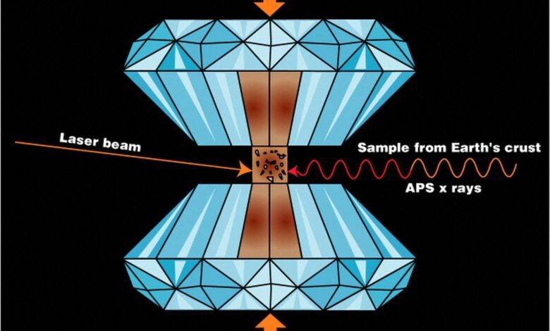 وقام الباحثون بمحاكاة الظروف التي من المحتمل أن تكون موجودة عندما كان قلب الأرض يتشكل. للبدء، قاموا بتغليف عينة صغيرة من معدن الحديد بزجاج سيليكات مائي لنموذج النواة المغطاة بالصهارة. ثم وضعوا هذا الجسم داخل خلية سندان الماس، وهو جهاز يتم فيه ضغط بلورتين من الماس معًا لتوليد ضغط شديد مشابه لذلك الموجود في قلب الأرض. ولخلق ظروف درجة حرارة عالية، استخدم العلماء أشعة الليزر التي سخنت الجسم إلى حوالي 8730 درجة فهرنهايت (4830 درجة مئوية).