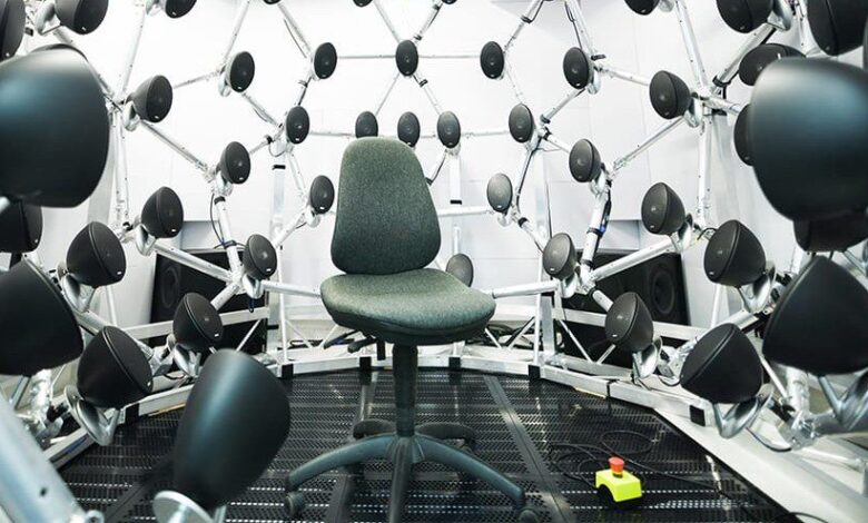 يقوم العلماء ببناء “قبة صوتية” ثلاثية الأبعاد مع مثل هذه المتحدثين العاليين ، فإنه يخدع أذنيك أنك في المصدر