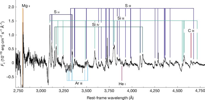 • Groh, J. H. Early-time spectra of supernovae and their precursor winds. The luminous blue variable/yellow hypergiant progenitor of SN 2013cu. Astron. Astrophys. 572, L11 (2014).